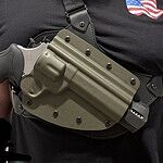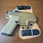 The mini tuck with horse hide and tan kydex makes for great carry. Low profile, easy on/off, and adjustable ride.